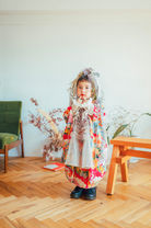 伝統的なアンティーク着物に遊び心と華やかさを。